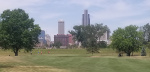 One of our groups on the green with city in the background.
